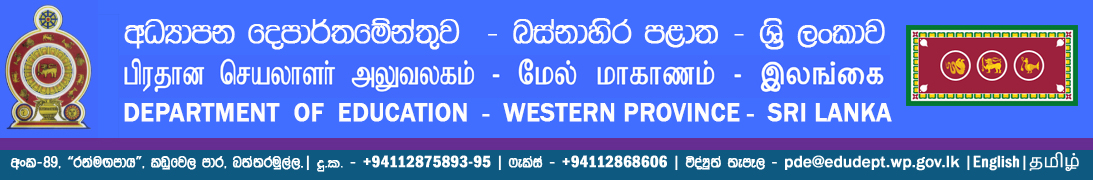 | කතුහිමිකම © 2018 අධ්යාපන දෙපාර්තමේන්තුව - බස්නාහිර පළාත - නිල අන්තර්ජාල බිහිදොර. සියළු හිමිකම් ඇවිරිනි |